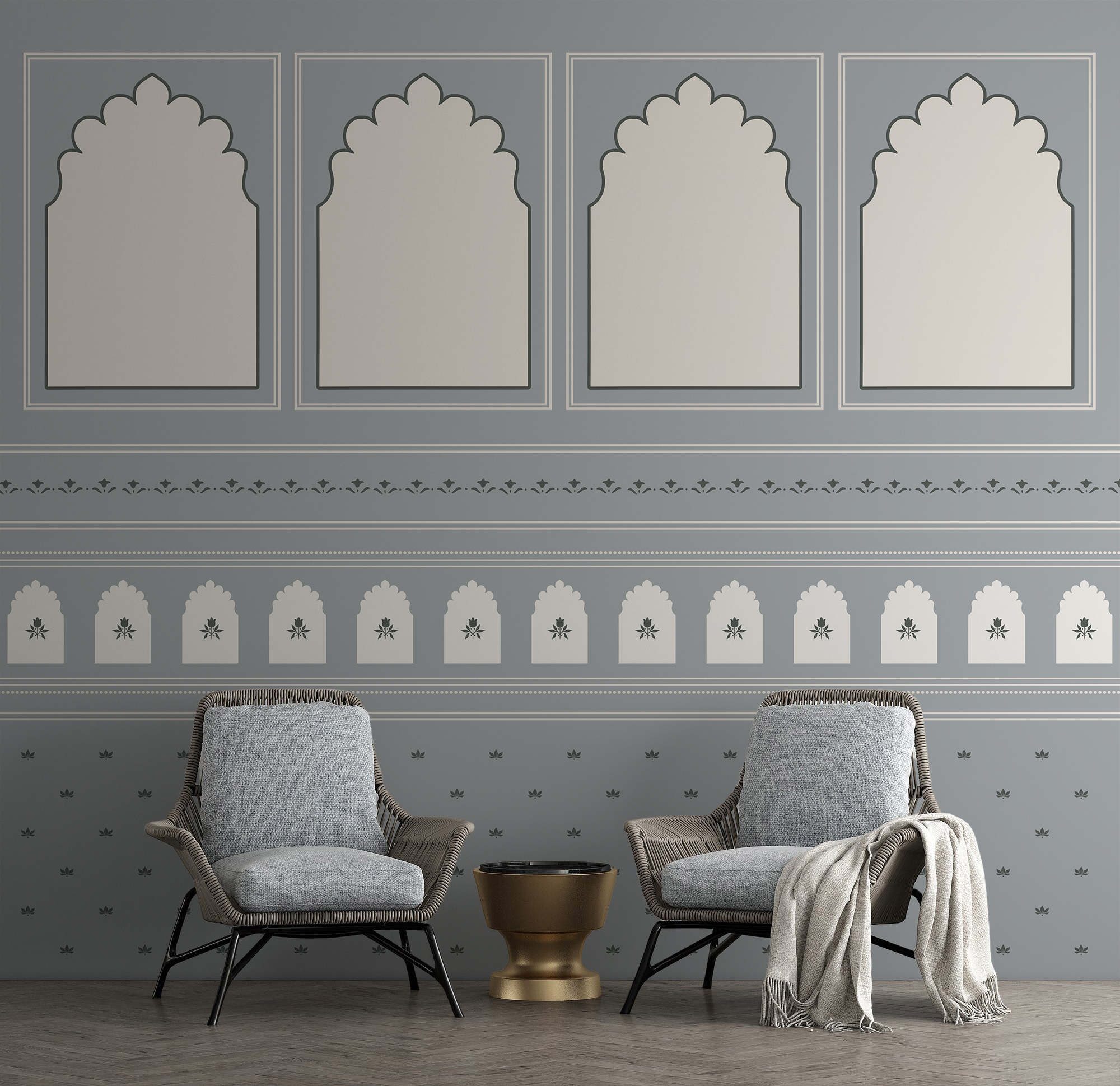 Each of these are originally hand painted motifs converted into printed wallpapers.